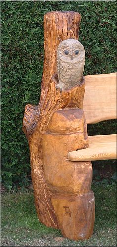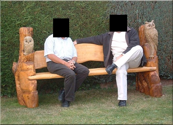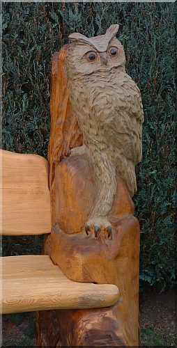 Eulenbank - zum Abschied aus dem Berufsleben.Seiten aus Pappel, Sitzfläche und Rückenlehne aus gebürsteter Fichte