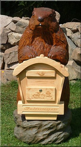 Gewünscht wurde ein Post- Murmeltier für diesen Briefkasten und aus eigenem Holz