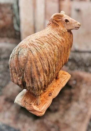 Douglasie halbiert, verleimt, Länge ca. 80 cm, Gewicht über 80 kg, grundiert, mehrfach farbig lasiert und geölt, 1200,- € -